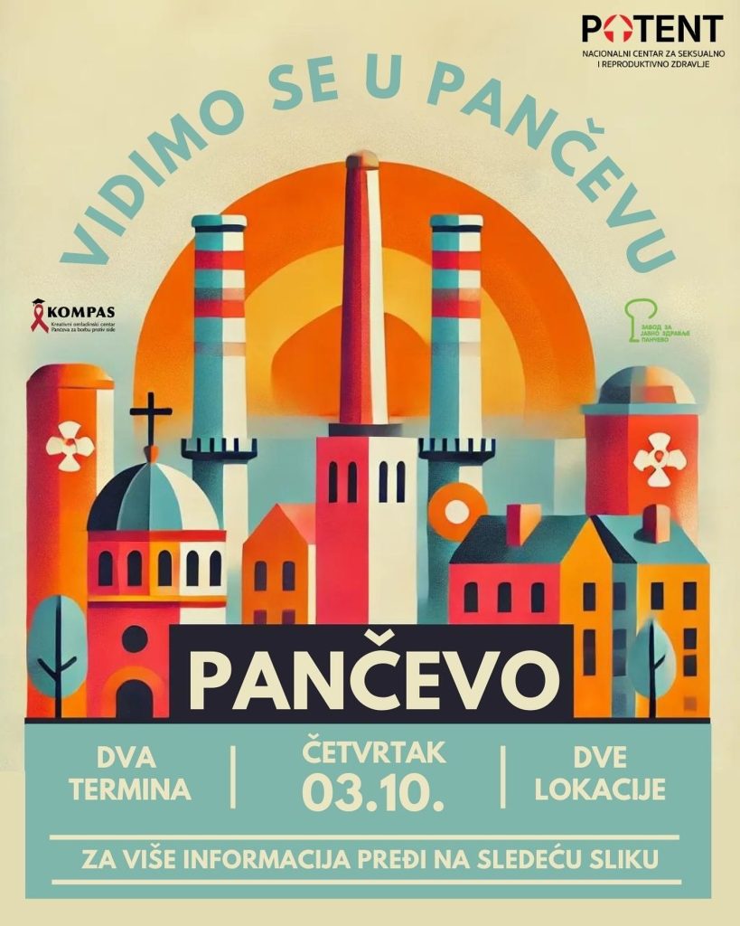 POTENT-Nacionalni centar za seksualno i reproduktivno zdravlje u saradnji sa Zavodom za javno zdravlje Pančevo organizuje testiranje na HIV i druge PPI 03.10.2024. godine u Pančevu na dve lokacije: Na Gradskom trgu kod Opštine, od 10 do 14 časova i na parkingu kod Tržnog centra Big, od 14 do 20 časova (informacije na telefon: 064/067-69-67).