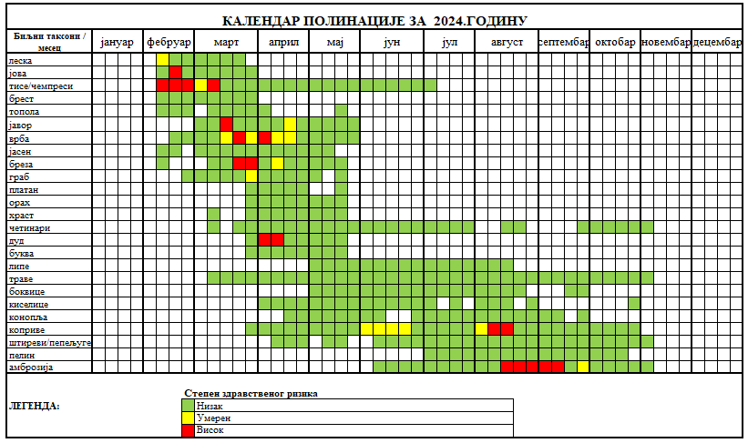 У сарадњи са здравственим институцијама Града Панчево Завод прати обољевање становништва од алергијских болести узрокованих алергеним поленом у ваздуху. За превенцију алергијских болести важно је да грађани прате календар полинације и редовне недељне прогнозе концентрација полена у ваздуху о чему се могу информисати на интернет страници и друштвеним мрежама Завода за јавно здравље Панчево и на интернет  страници Агенције за заштиту животне средине Министарства заштите животне средине Републике Србије.