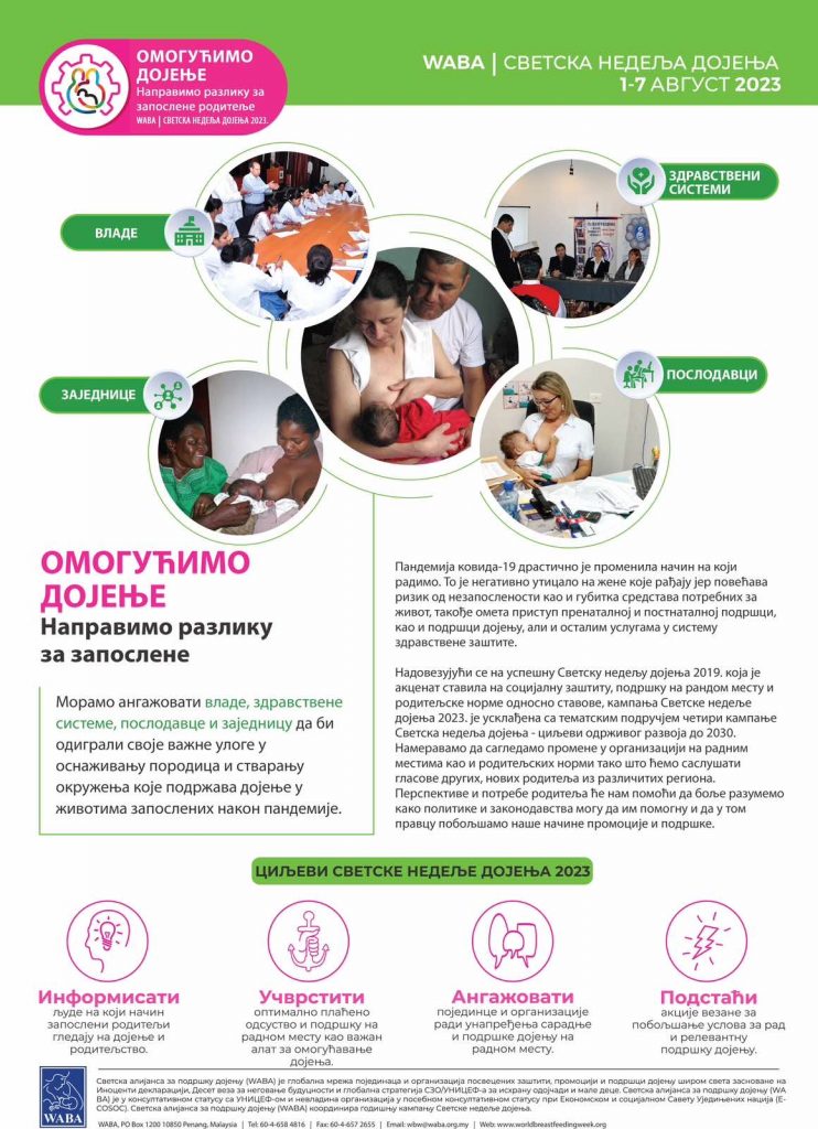 Ове године кампања се обележава под слоганом „Омогућимо дојење – направимо разлику за запослене родитеље“.