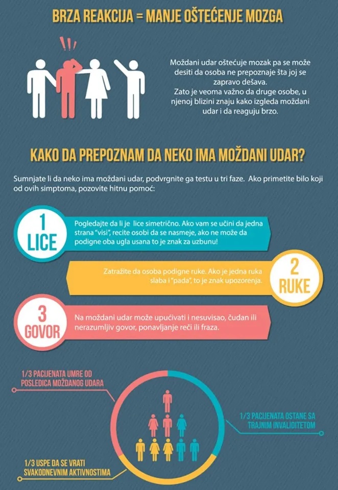 Informišite svoju porodicu i prijatelje o važnosti brige o sebi protiv moždanog udara. Obrazujte sve šta treba da rade kada misle da neko ima moždani udar. Pozovite 194 kada su ovi simptomi prisutni. Ne čekajte!